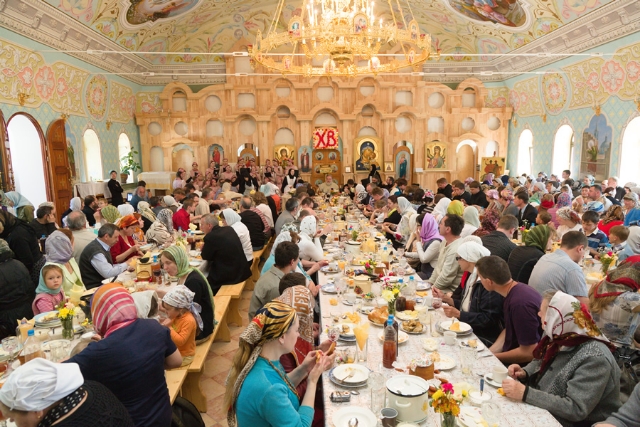 ...Восемь раз в году, на большие праздники, у нас бывает очень много народу. И все, кто приходит на службу, остаются на трапезу – мы их приглашаем. Это примерно 400 – 500 человек. Бывают у нас концерты и выставки.