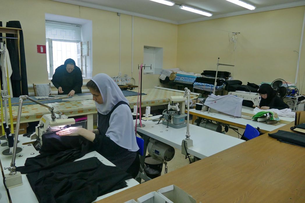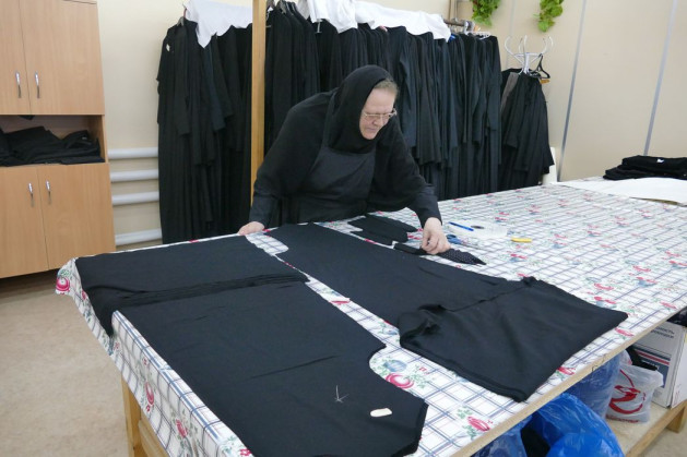 Теперь швейная мастерская занимает отдельный двухэтажный корпус. Сюда и приходят при необходимости сестры за подрясниками, рясами и другой монашеской одеждой. Полученную одежду относят на освящение игуменье Сергии. Отношение к монашеской одежде благоговейное, ее нельзя выкидывать, отдавать кому-то другому, небрежно к ней относиться. Монашескую одежду, уже непригодную для надевания, обычно сжигают. Различается одежда для храма и для послушания. Особенно благоговейно сестры хранят постригальные одежды, так как по смерти именно в них облачают монашествующих. Перед постригами вся одежда, которую предстоит получить из рук владыки Георгия новопостриженным сестрам, освящается в алтаре.