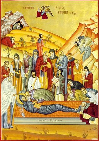 Преподобный Ефрем Сирин, учитель покаяния, родился в начале IV века (год его рождения точно неизвестен) в городе Низибии (Месопотамии) в христианской семье бедных земледельцев. Родители воспитали сына в благочестии. Но, отличаясь с детства вспыльчивым, раздражительным характером, он в юности часто ссорился, совершал необдуманные поступки, даже сомневался в Промысле Божием, пока не получил от Господа вразумление, направившее его на путь покаяния и спасения. Однажды его несправедливо обвинили в краже овец и посадили в темницу. В ней он услышал во сне голос, призывавший его к покаянию и исправлению жизни. Он был оправдан и освобожден.
