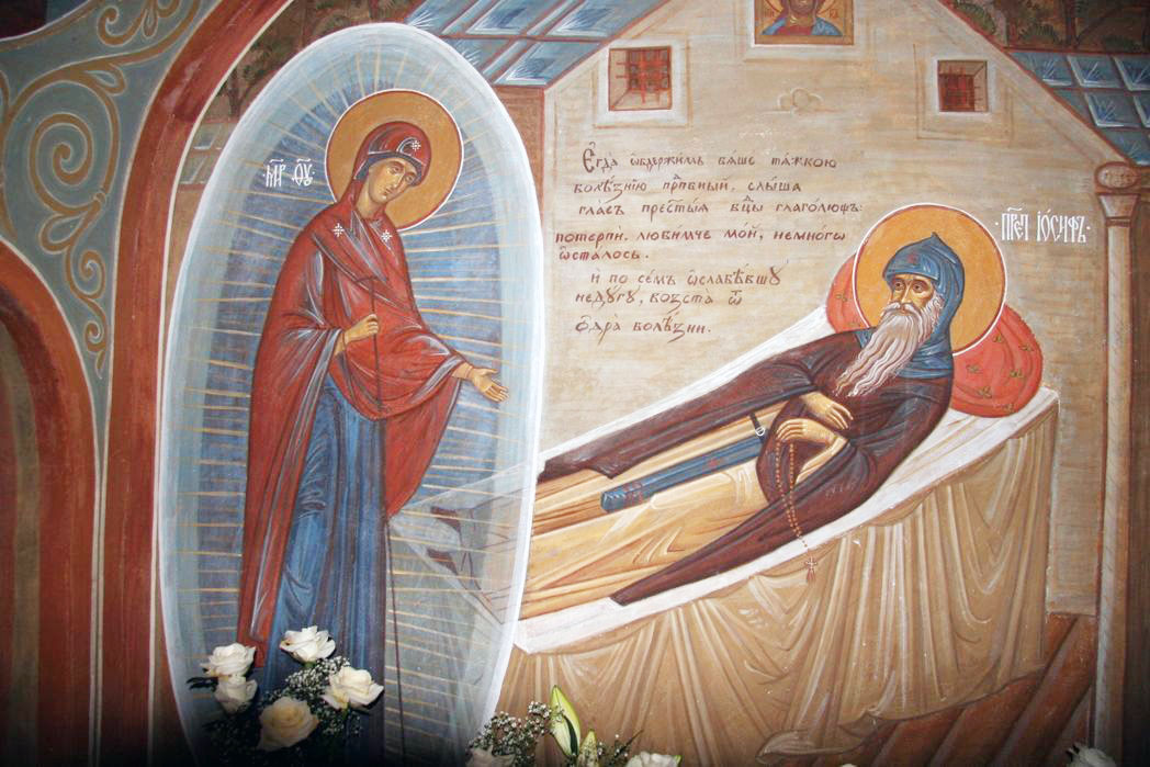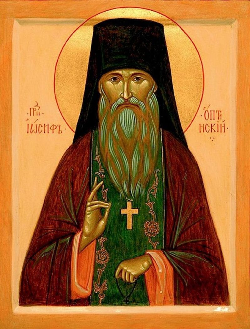 Преподобный Иосиф (в миру Иван Ефимович Литовкин; 1837– 9 мая 1911) родился в селе Городище Харьковской губернии, в очень благочестивой семье. Он рано потерял родителей. Любимая сестра Александра за четыре года до смерти матери ушла в монастырь. Старший брат Семен, ставший полным хозяином имущества, был пристрастен к вину. Ивану пришлось пережить многие лишения, скорби и опасности, но Господь хранил его. Наконец, Иван попал на службу к таганрогскому купцу Рафаилову, который очень ценил юношу за его кроткий нрав и честность и даже хотел женить на своей дочери. Однако Иван стремился к иной жизни. В миру он чувствовал себя неуютно. Храм был единственным местом утешения, а молитва – неизменным источником духовной радости.