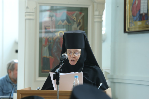 Игумения Анастасия (Мордмиллович), настоятельница Казанского женского монастыря г. Калуги, в докладе «Послушание – основной монашеский обет» подчеркнула мысль, что послушание есть не что иное, как закон жизни человека, с помощью которого он должен воплотить замысел Божий о нем. Небесная Иерархия подчинена закону послушания: все Небесные Силы, в т.ч. архангелы и ангелы, живут радостным послушанием Богу, сказала докладчица. Игумения Анастасия привела святоотеческие высказывания о необходимости для монашествующих исполнения обета послушания. «Исполнение обета послушания оберегает монаха от всех козней врага, хранит, поддерживает, утешает и радует в течение всего следования по тесному монашескому пути», – заключила матушка.