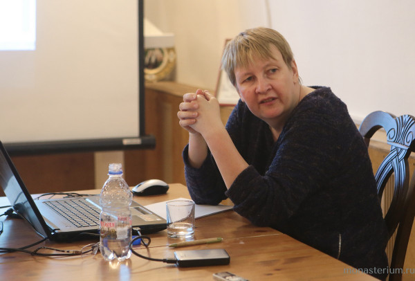 Докладчица также познакомила аудиторию с различными наименованиями самого вступления игумена в должность (любопытно, что в некоторых документах говорится о «хиротонии» игумена – разумеется, не в сакраментальном смысле). Особое внимание она уделила самой процедуре введения игумена в должность: типики монастырей содержат достаточно подробные описания этой процедуры, в которой важную роль играли вручение собственно типика обители и, конечно же, игуменского посоха.