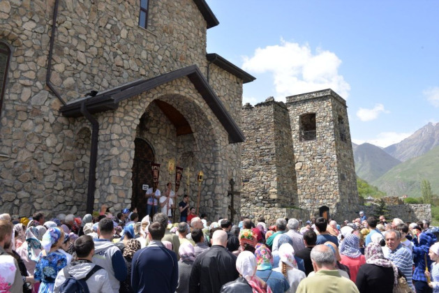 На протяжении многих веков и по сей день этот праздник остается одним из самых почитаемых во всем православном мире, а для нас он – праздник вдвойне, даже втройне! Потому что в монастыре – престольный праздник, и вдобавок к этому на день Успения Пресвятой Богородицы по церковному календарю приходится празднование особо чтимой на Кавказе святыни – Иверской (Моздокской) иконы Божией Матери, чей чудотворный образ пребывал у нас в Куртатимском ущелье более шести веков, но в годы лихолетья пропал... Желающих побывать в обители на праздничном богослужении, помолиться с братией из года в год становится всё больше. Приезжают паломники из разных уголков Осетии. Собирается от 800 до тысячи человек. Хотя это еще не так много. (Ведь сколько верующих с сожалением нам сообщают: так хотели приехать, да не можем – «на носу» начало учебного года, надо подготовиться). А вот на праздник Крещения Господня у нас бывает от 8 до 15 тысяч человек. Картина, скажу я, впечатляющая: всё ущелье заполнено народом, все стремятся окунуться в воды горной реки! Причем есть такие, кто желает принять таинство Крещения и ждет этого дня в течение года, чтобы именно к нам приехать и здесь покреститься. Но если говорить о празднике Успения Пресвятой Богородицы, то праздничную службу возглавляет правящий архиерей архиепископ Леонид – священноархимандрит нашей обители, и проходит она благоговейно, торжественно. Братию этот праздник еще сильнее сплачивает, потому что каждый раз приходят на память воспоминания, как мы сюда пришли и стали возводить монастырские стены, что называется, с первого камня. Когда братия сама строит монастырь – это поразительно мощный объединяющий всех процесс!