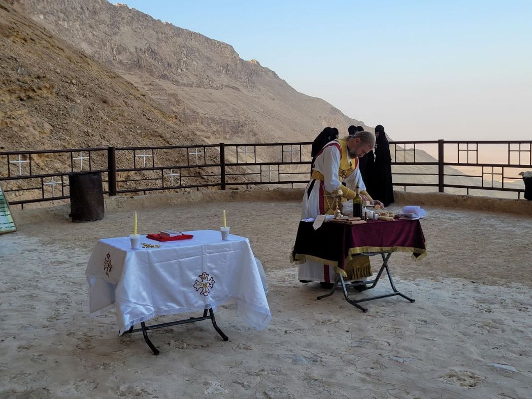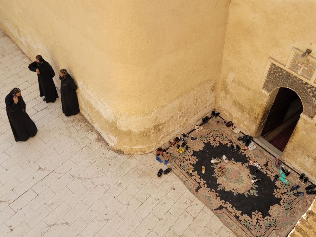Разделение между Церквами не позволяет православным христианам вступать в евхаристическое общение с коптами, поэтому, к сожалению, при всей нашей взаимной любви мы не молимся вместе. Мы ни разу не были в коптских монастырях на Литургии. Нам давали возможность помолиться отдельно, предоставляя престол не в алтаре, а вынося его на центральное место в храме. Владыка – делегацию возглавлял епископ Сызранский и Шигонский Леонтий – брал с собой антиминс, на котором служил. И еще, в этом году Господь сподобил нас помолиться за Божественной литургией у пещеры преподобного Антония Великого.