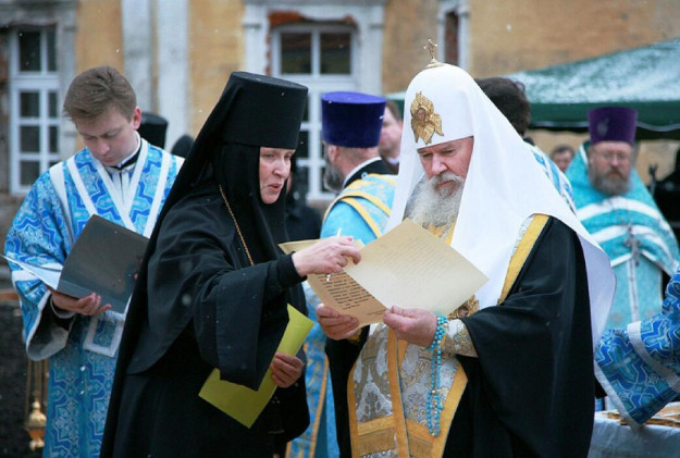 Хорошо помню этот вечер. Шел сильный дождь. Мы приехали на Чистый переулок с матерью казначеей. Случилось так, что мимо нас проходил архипастырь, который был в курсе нашего дела. Увидев нас, он спросил: «Ну что, конечно же – нет?» – «Конечно да!» – ответили мы с матерью казначеей. Тогда Владыка повторил слова Святейшего Патриарха: «Не может быть!» Потом он взял у нас Постановление Правительства Москвы и отнес его на заседание Синода. В этот памятный вечер и было принято решение о возобновлении монашеской жизни в Богородице-Рождественском монастыре.