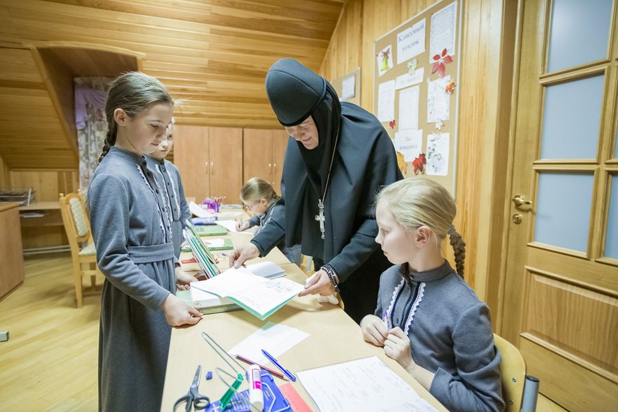 Девочки получают и хорошее светское образование, в том числе музыкальное. Учатся по программе общеобразовательной школы, а поскольку классы у нас небольшие, то получается почти индивидуальное обучение. На уроках труда овладевают навыками кройки и шитья, учатся готовить, что-то делать по хозяйству. В монастыре несут посильные послушания: в трапезной накрывают и убирают за собой столы, в храме церковничают. Занимаются вокалом, готовят выступления к праздникам обители: поют, танцуют и играют на музыкальных инструментах.