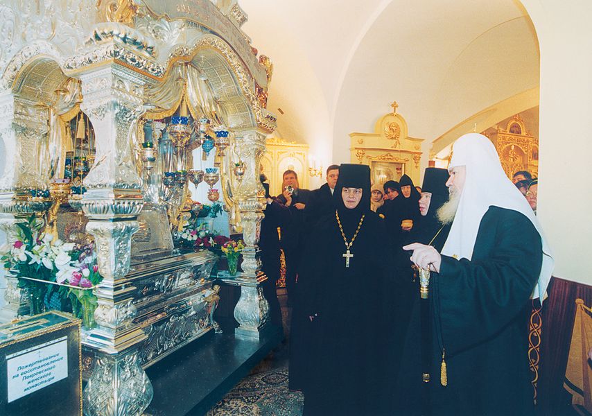 После этого я поехала в Патриаршую резиденцию в Чистом переулке, там подошла под благословение к Святейшему Патриарху Алексию II. Он мне вручил копию проекта устава монастыря, сказал изучить и подойти к нему к 17 часам. Я читала этот устав и совсем ничего не понимала. И плакала: кого Святейший хочет поставить открывать монастырь? Разве можно? Ведь я ничего в этом не соображаю. Решила уговорить Патриарха, чтобы он отменил мое послушание. И, когда подошла к Святейшему, сказала ему, что надо, чтобы кто-то со специальным образованием открывал монастырь и понимал, что написано в этих бумагах. Но Патриарх только улыбался: «Ты этот устав дай мне, я дам юристам, а ты должна открыть монастырь. Ты же в Патриархии за пятерых несла послушание и справлялась – я тебя хорошо знаю. Кого еще я могу поставить?» Я стала предлагать кандидатуры, кого можно поставить, но Патриарх отказывался. Потом он мне говорит: «У тебя большой опыт монастырской жизни – ты всё-таки жила в монастыре. Я же не могу поставить человека без опыта монашеской жизни».