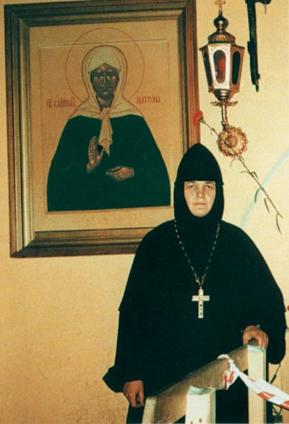 Выдержать такую нагрузку непросто, но всё по молитвам блаженной Матронушки, мы ее так любим! Ведь она всю свою жизнь без остатка отдавала людям, молитве к Богу за народ наш. И нас укрепляет в монашеском делании. Я так полюбила Матронушку, что ради нее я была готова всё терпеть. Когда еще не было обретения мощей, монастырь с огромным трудом только-только восстанавливался, я молилась ей, чтобы она «пришла» к нам своими святыми мощами. Матронушка тогда явилась мне во сне, осмотрела все владения монастыря, всю территорию, храмы и сказала очень сочувственно, жалея: «А ты выдержишь такое количество народа, которое я буду принимать?» Она повторила это три раза. Я встала на колени и просила ее: «Матронушка, ты только приди к нам, я все выдержу!» Мы стояли и разговаривали на том месте, где сейчас висит икона Матронушки на улице.
