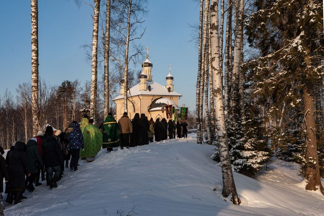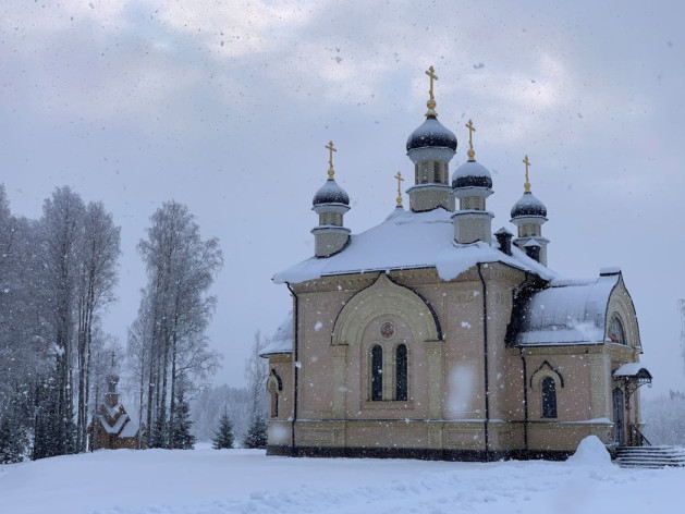 Первый год налаживания монастырской жизни особо запомнился. Стояли такие морозы, которые в данной местности встречаются раз в сто лет (в некоторые дни температура доходила до минус 45 градусов!). Но невозможное человекам – возможно Богу. Господь явил Свою милость. В августе 2009 года был отслужен первый молебен у Поклонного креста, воздвигнутого на месте предполагаемого строительства каменного храма. Вновь зазвучала молитва. Монашеская жизнь немыслима без участия в Таинствах Церкви, и для нас было важно побыстрее закончить строительство небольшого храма в честь Святой Живоначальной Троицы, внешне напоминающего часовню. Первая Божественная Литургия была отслужена в нем 31 января 2010 года, в день памяти преподобного Афанасия Сяндемского. С виду строение кажется крохотным, но желающих почтить память преподобного и помолиться там, где под спудом покоятся его мощи, было так много, что количество причастников достигло шестидесяти человек. Мы только удивлялись: как этот крохотный храм смог всех вместить?