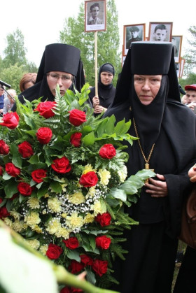 Нам часто задают вопрос, зачем же православный монастырь занялся этим делом – тем более что те испанцы, вероятно, были крещены в католицизме. На что мы, почти оправдываясь, чтобы нас не сочли сторонниками какого-нибудь непопулярного движения, отвечаем: «Да они за нас жизни отдали!». Для меня и сестер это еще и страничка летописи монастыря, так как испанские юноши сражались и погибали в боях за 40-ю высоту, которая граничит с монастырской территорией. До сих пор при строительных и полевых работах мы находим снаряды, гранаты, патроны и другие артефакты времен Великой Отечественной войны. По воспоминаниям ополченцев, на территории монастыря проходили тяжелейшие бои, что, кстати, хорошо видно на финских снимках военных лет, где попавшие под обстрел и полуразрушенные монастырские постройки запечатлены с разных ракурсов, а монастырская земля вся изрыта воронками от снарядов. Имена испанских добровольцев были преданы забвению, мало кто о них помнил, при этом родственники некоторых из них долгие годы продолжали поиски «потерявшихся» где-то на просторах СССР своих сыновей и братьев…