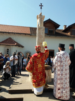Итак, с 1984 года в Ясеновце существует церковь, которая с 2000 года стала монастырем и обрела всеправославное значение, о чем свидетельствуют постоянные посещения обители епископами и священниками России, Украины, Польши, Чехии. Русские даже воздвигли памятник Ясеновцу и общим (сербско-русским. – Прим. пер.) страданиям, который находится на монастырской площади и 13 сентября этого года был освящен митрополитом Смоленским и Дорогобужским Исидором в присутствии Сергея Шихачевского, автора памятника и благотворителя, который пожертвовал средства на его создание.