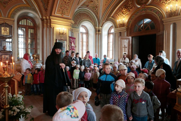 По воле Господа мы теперь живем в тесном соседстве с жителями поселка Новый Быт Чеховского района и, конечно, зависим от них. Прежде всего – в духовном плане. Ведь нам перед Богом отвечать, какой пример мы им показываем, к чему их призываем. Вряд ли правильным можно считать подход: люди пришли на службу и тех, кто готовился к Причастию, мы исповедовали, причастили, всё на этом – монастырь свою миссию выполнил! Но рассмотрим такой аспект: немало верующих семей приводит в храм детей, которым требуется особое внимание. Какое? У нас дети после службы пообедали, затем пошли на занятия воскресной школы по основным предметам, а потом занялись музыкой, рисованием, лепкой, пением. Любители футбола отправились тренироваться на поле, готовиться к очередному матчу. Любители шахмат заняли свои позиции. Важно, что эти ребята привязаны к Церкви, хотя, быть может, некоторые еще не до конца понимают, что такое вера в Бога и какой Он, Бог. Кто-то со стороны скажет: заниматься спортом или творчеством вполне можно и за церковной оградой – никакой, мол, разницы. Нет, разница существенная! Сверстники наших ребят, что находятся вне церковного попечения, вместе со своим увлечением получают некий уличный элемент. Азарт, горделивость, страстность… Я благодарен Богу, что при монастыре действует воскресная школа, и это дает нам возможность воспитывать ее учащихся в духе жертвенной любви к Господу и ближним, к родителям, к Родине. Мы стараемся, чтобы улица их «не перетянула».