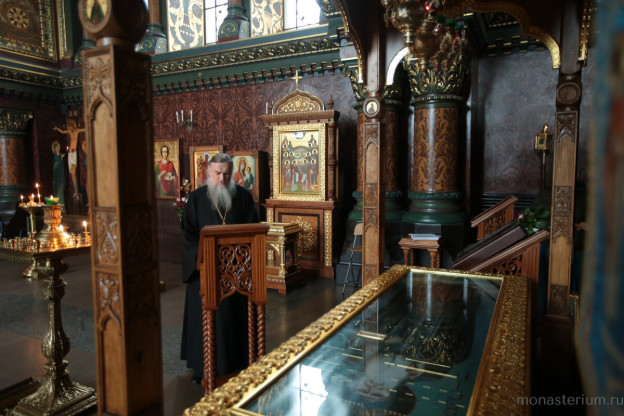 Чтение святоотеческой литературы в монастыре должно быть ежедневным. Как апостол Павел пишет в первом послании к Коринфянам: «И слово мое и проповедь моя не в убедительных словах человеческой мудрости, но в явлении духа и силы, чтобы вера ваша утверждалась не на мудрости человеческой, но на силе Божией. Мудрость же мы проповедуем между совершенными, но мудрость не века сего и не властей века сего преходящих, но проповедуем премудрость Божию, тайную, сокровенную...» (1 Кор. 2:4−7). Тогда только тайны богопознания открываются, когда человек глубоко погружается в писания святых отцов. Следует также сказать, что в наше время переписывание рукописей искусственно не возродить. Но, по совету старцев, я всем советую заниматься заучиванием Евангелия и поучений святых отцов. Вообще считается, что монашествующим обязательно надо знать наизусть пятую, шестую и седьмую главу Евангелия от апостола Матфея, где даны все заповеди Христа, знать близко к тексту «Душеполезные поучения аввы Дорофея», где можно найти ответ на любой вопрос.  Господь сказал в Святом Евангелии: «Аще кто любит Мя, слово Мое соблюдет» (Ин. 14:23), и «Не любяй Мя словес Моих не соблюдает» (Ин. 14:24), и «Аще заповеди Моя соблюдете, пребудете в любви Моей» (Ин. 15:10). Для чего нам исполнять заповеди, – чтобы быть добренькими, хорошими? Надо четко осознавать, что исполнение заповедей Христовых – это не просто какая-то общая нравственная добродетель. Ими Господь открыл вход в Царствие Небесное еще здесь на земле. Спаситель говорил: «Аз есмь путь и истина и живот...» (Ин.14:6). Живот – по-русски значит жизнь. И вот этот путь к истине и к жизни в благодати, которая поселяется в нас, – то есть самую глубокую тайну в Евангелии – открывают нам святые отцы. Без чтения их творений мы будем ходить словно с повязкой на глазах, не зная, куда направиться. Даже если кто-то усердно молится и делает добрые дела, ум его останется без плода.