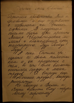 Во Владимире, в епархиальном музее, с любовью создаваемом все эти годы митрополитом Евлогием и его помощниками, хранится вышитая шамординскими сестрами икона преподобного старца Амвросия. Она была подарена Владыке в его бытность наместником Оптиной пустыни. Как при нем и с его участием открывалась Свято-Амвросиевская Казанская женская пустынь в Шамордино, это другая тема. Рядом с иконой лежит под стеклом письмо архимандрита Иоанна (Крестьянкина), написанное архимандриту Евлогию незадолго до его хиротонии во епископа. «Оптина прощается со своим наместником, и он прощается с тем, во что была вложена частичка сердца и масса трудов. А впереди еще большие труды, впереди распятие», – писал Всероссийский старец, предвидя, сколько трудов по возрождению духовной жизни на Владимирской земле архипастырю предстоит понести. Назовем один из самых больших плодов: ко времени вступления владыкой Евлогием к управлению Владимирской епархией здесь не было действующих монастырей. Сегодня их 30. И скоро откроются новые.