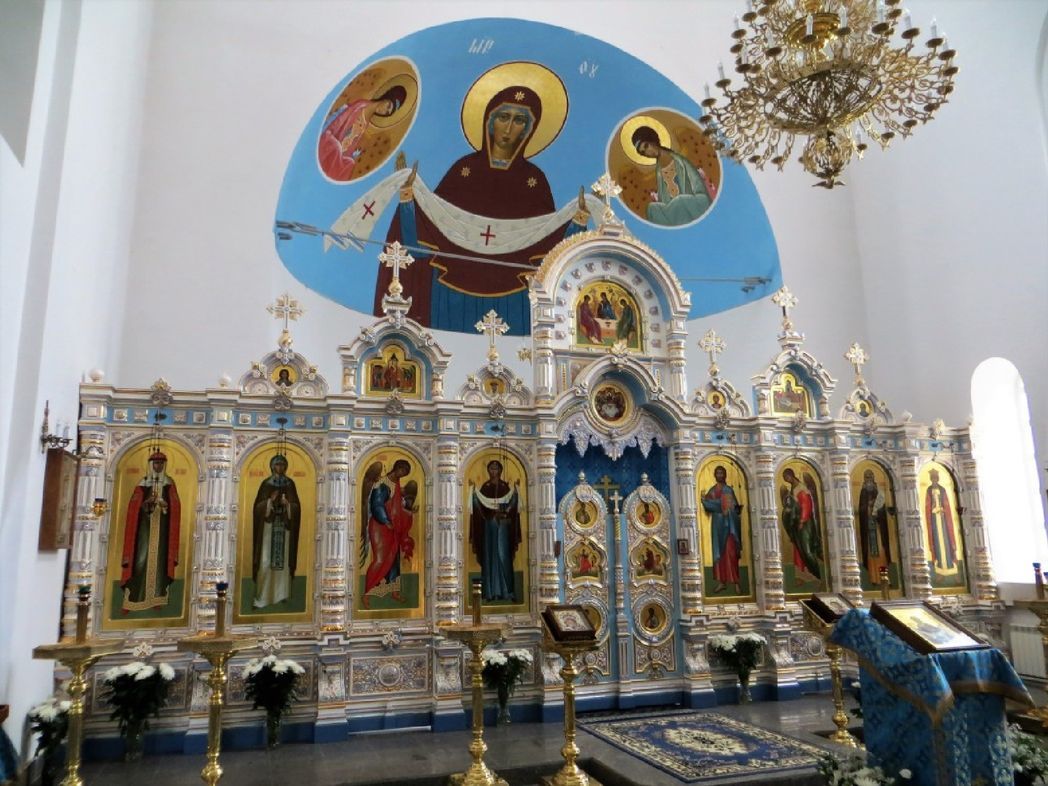 Обычно к нам приезжало много паломников, и люди чувствовали себя родными, потому что воины, которых мы поминаем объединяли нас всех. Почти все молящиеся в храме старались в этот день причаститься Святых Христов Таин. Скажу и о своей личной радости: по благословению Святейшего Патриарха Кирилла, от 2 апреля 2018 года память преподобной Ангелины Сербской (по дню преставления) включена в месяцеслов Русской Православной Церкви 12 августа (30 июля по старому стилю)… Как сейчас выглядит наш белоснежный Покровский храм? В центральном его приделе установлен фаянсовый иконостас в голубых тонах (этот цвет, связанный в Православной Церкви с Божией Матерью, символизирует высшую чистоту и непорочность). В приделе Иоанна Воина иконостас в красных тонах – цвет святых мучеников. Благословение на фаянсовый иконостас мы получили у епископа Смоленского и Вяземского Исидора (сейчас он – митрополит Смоленский и Дорогобужский). В сборе средств на два иконостаса приняло участие очень много жертвователей, но основной вклад внес Игорь Алексеевич Сазонов.