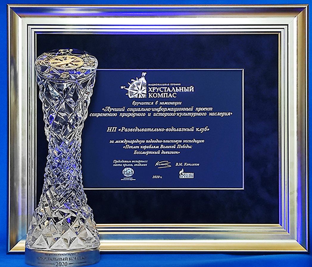 Любая награда это признание, что наша деятельность, наши экспедиции, наши погружения на глубину действительно нужны обществу. Раз экспедицию наградили, значит, мы занимаемся полезным делом. Мы это делаем не для себя, а для людей, для общества, для России. И любое признание наших заслуг для нас значимо. Любая премия это доказательство того, что проект важен для страны. Думаю, что такие экспедиции важны не только для России, но и для Эстонии, и для других стран, которые принимали участие в той страшной и кровавой войне.
