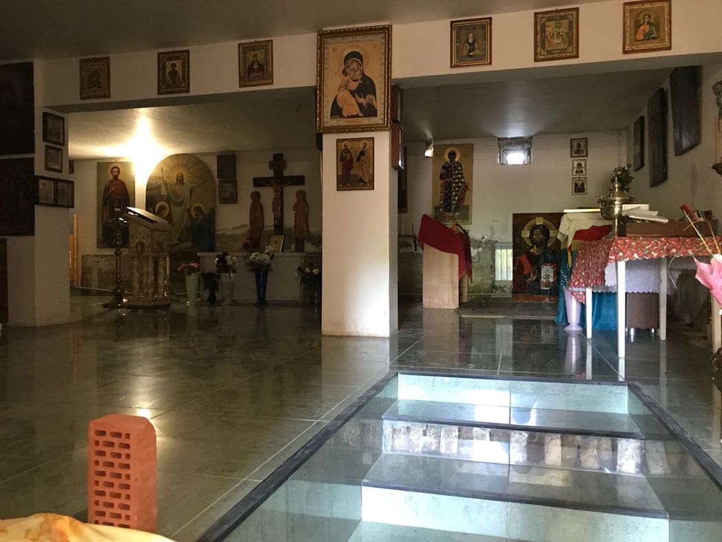 Да, похоронен архимандрит Серафим в цокольном этаже монастырского храма, где обустроены два придела: в честь апостола Иоанна Богослова и апостола от 70-и Флегонта. (По преданию, священомученик Флегонт был благовестником Евангелия среди язычников и епископом в городе Марафоне во Фракии. В конце земной жизни он перенес жестокие страдания и сподобился мученической кончины.) До разрушения женского монастыря в Кимляе, после перенесения сюда из соседнего городка Троицка мощей столпника Флегонта, к собору был пристроен придел в честь Небесного покровителя нашего подвижника, а в самом Троицке находилась церковь в честь апостола Иоанна Богослова, к которой были приписаны жители деревни Кимляй. И первый антиминс, когда мы еще жили и служили в заброшенном магазинчике деревни Кимляй, был подписан владыкой Варсонофием в честь святого апостола и евангелиста Иоанна Богослова. Теперь мы каждый год служим на этом антиминсе в день памяти святого.