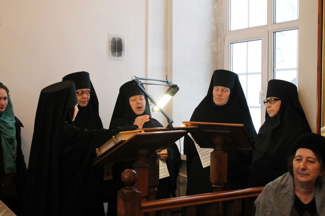 Нас очень немного: десять насельниц в монастыре вместе со мной, двое – в Никольском скиту в 25 км от обители и одна – на подворье монастыря в Санкт-Петербурге (храм святой благоверной княгини Анны Кашинской). Послушания самые обычные: скотный двор и огороды, в алтаре и свечной лавке, в трапезной и бухгалтерии. На клиросе поют все, кто к этому способен, совмещая с основными послушаниями. Одна из сестер пишет иконы для монастыря, другая отвечает за прием паломнических групп и экскурсионную работу. Каждая сестра совмещает по несколько послушаний.