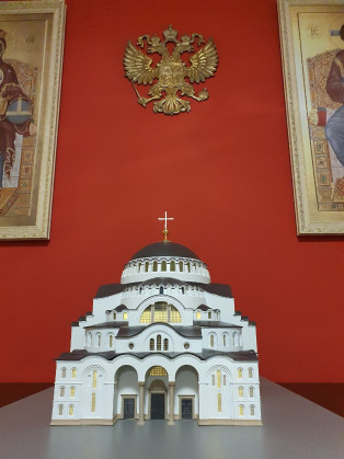Потом, когда церковь будет построена, мы поведем людей далее, в храмовый комплекс. И очень хочется, чтобы каждый туда приходящий понял: спасение нашего народа как живого носителя святой веры невозможно без исправления многих основополагающих вещей. Как на Небе существует иерархия (Господь создал различные роды ангельских сил – высшую триаду, среднюю, низшую), так и на земле есть своя иерархия. В православном сознании идеальное государство – это, конечно, монархия. У нас монархия была утрачена – был осуществлен сатанинский заговор по уничтожению династии Романовых, правившей Россией триста четыре года. Разгорелась гражданская война, началось кровопролитие, затем была Великая Отечественная война – Господне наказание России за безбожные годы... В художественном оформлении храма хочется увидеть и воплощение этой значимой темы – спасительного государственного устройства, то есть возрождения имперского самосознания нашего народа. Однако основная тема храма, конечно же, должна быть посвящена Самому Спасителю и обретению христианской веры на земле. Предполагается обширная разветвленная программа. В каком материале всё будет технически осуществляться, пока что не определились. Но по стилю архитектурного решения просится мозаика. Она же является наиболее эффективным материалом во всех отношениях, в том числе и в быстроте осуществления, так как её можно изготавливать отдельно в мастерских и впоследствии монтировать на стены. Что очень экономит время. В общем, над этим предстоит еще подумать.