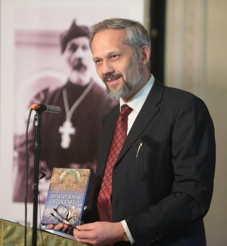 Вечер памяти стал не только вечером воспоминаний. В завершающей его части состоялась презентация книги «Небо и земля отца Глеба», выпущенной буквально накануне издательством Зачатьевского монастыря. Об идее новой книги, а также о работе над ней рассказал младший сын приснопамятного пастыря доктор медицинских наук, профессор Василий Каледа.