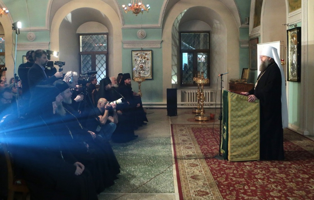 Игумен монастыря Петр (Еремеев), поприветствовав собравшихся от лица братии обители, отметил, что насельники монастыря помнят протоиерея Глеба за труды во имя возрождения обители. «Отец Глеб пришел на Петровку, в эту древнюю обитель, на заре церковного возрождения. Глубоко символично, что этот, некогда тайный, священник раскрылся именно здесь как многогранная личность в открытом пастырском служении в то историческое время, когда из жизни ушли последние наследники Петровской монашеской общины – тайные монахини – постриженницы последних отцов Высоко-Петровского монастыря. Отец Глеб словно привил возрожденную петровскую христианскую общину к древу Русской Церкви, выжившей в трудную советскую эпоху в явных и скрытых подвигах ее верных чад»,– сказал в своем слове игумен Петр.