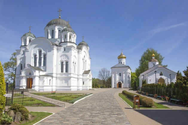 История нашего монастыря неразрывно связана с личностью преподобной Евфросинии Полоцкой. Святая Евфросиния, носившая в миру имя Предслава, происходила из древнего княжеского рода, восходящего к равноапостольному князю Владимиру. Из Жития преподобной известно, что годы своего отрочества она посвящала чтению Священного Писания и житий святых. Достигнув двенадцати лет, возраста уже зрелого в Древней Руси, Предслава не захотела вступать в брак и тайно покинула родительский дом. Поступив в монастырь, она приняла иноческий постриг с именем Евфросиния. Спустя некоторое время, по благословению епископа Илии святая перешла на жительство в келию при Полоцком Софийском соборе, где свободные от молитвы и богомыслия часы посвящала переписыванию священных книг. Около 1125 года по повелению Ангела преподобная основала монастырь недалеко от Полоцка, в местечке, называвшемся Сельцо. На этом месте был воздвигнут каменный храм, освященный в честь Преображения Господня. Стены храма расписывали лучшие мастера того времени, уникальные фрески почти полностью сохранились с XII века до наших дней. В 1161 году в Спасский храм был принесен «на вечное хранение» воздвизальный Крест-ковчег, изготовленный по заказу святой Евфросинии мастером-ювелиром Лазарем Богшей. Выполненный в древневизантийской технике перегородчатой эмали, Крест содержал в себе бесценные христианские святыни: частицу