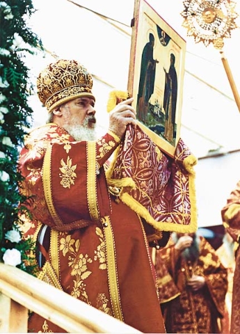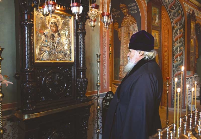 ... Святейший Патриарх Алексий был для нас образцом истинного монаха. Монах – μόνος – в переводе с греческого означает 'один, един с Патриарх Алексий IIБогом'. И он воистину достиг этого единства.Несмотря на огромную занятость, на постоянное общение с множеством совершенно разных людей Святейший был всегда в Боге, и именно это давало ему силы нести Патриарший Крест. Всегда поражало его молитвенное предстояние перед Богом. Оно невольно переходило на всех окружающих, отрывало от земли. На его службах невозможно было стоять и думать о каких-то своих проблемах. Его молитва укрепляла всех нас, и наши приземленные сердца возносило горе´.