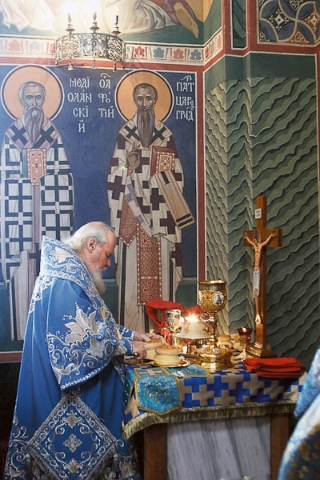 Любы долготерпит, милосердствует, любы не завидит, любы не превозносится, не гордится, не безчинствует, не ищет своих си, не раздражается, не мыслит зла, не радуется о неправде, радуется же о истине. Вся любит, всему веру емлет, вся уповает, вся терпит. Любы николиже отпадает.