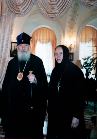 Более двадцати «разношерстных», разнородных организаций (начиная с театра и заканчивая райтрестом столовых), обосновавшихся в стенахИгумения Серафима и Патриарх Алексий II монастыря, никак не хотели съезжать. Жильцы квартир тоже противились переезду с «насиженного места». Нынче трудно в это поверить, потому что монастырь на Карповке у всех, кто побывал в нем в течение последнего десятилетия, ассоциируется с благолепием храмов и ухоженностью монастырских зданий. А игумении Серафиме пришлось одновременно быть и требовательным «прорабом» на той великой стройке, и усердной собирательницей сестер.