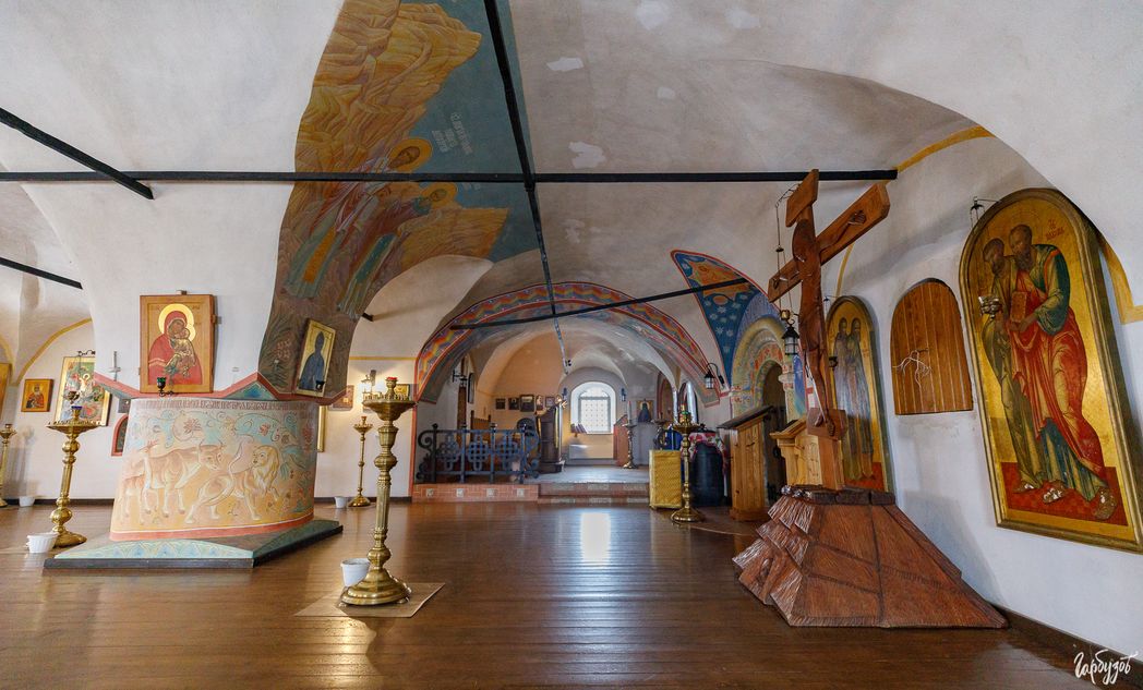 Мы заходим в большой и величественный храм. Здесь 19 лет назад состоялась первая Литургия – в день престольного праздника, 21 сентября 2002 года. Сейчас службы проходят в теплом приделе в честь великомученицы Екатерины.