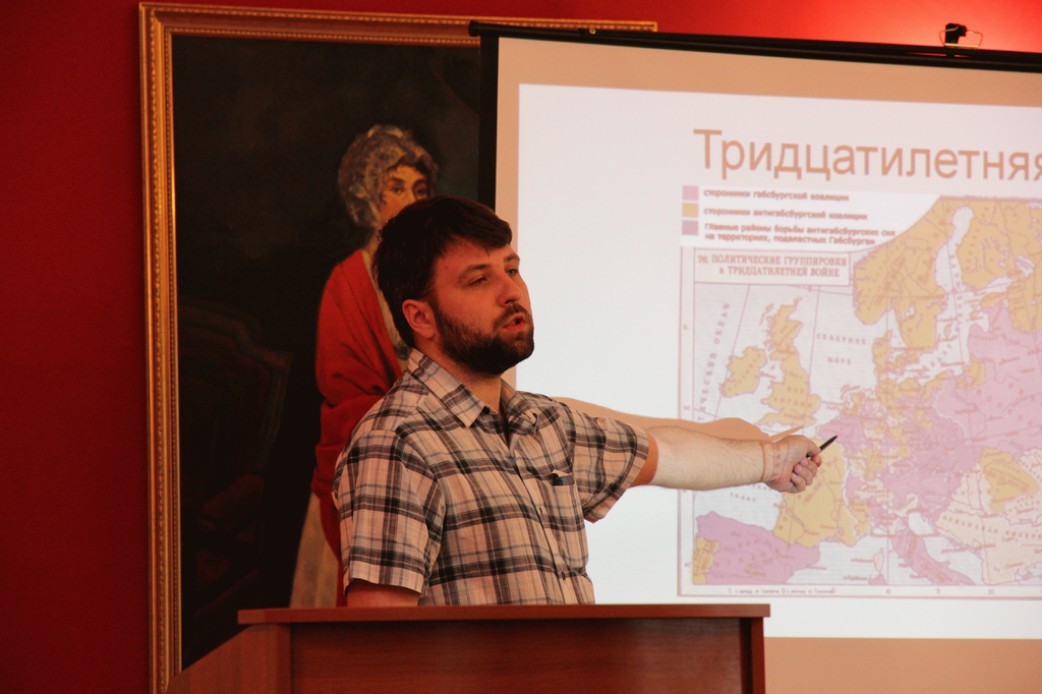 Лекция Олега Анатольевича Крылова, руководителя Исторического театра «Старинный фейерверк» (Москва) называлась «Как Россия со Швецией воевала. Рассказы по истории Северной войны». Олег Анатольевич является специалистом по военному делу, оружию, обмундированию и быту русской армии этого периода. Его рассказ изобиловал интереснейшими подробностями и бытовыми деталями.