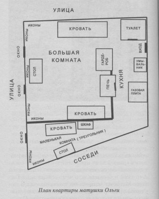 Но тогда вместе с ней в комнатушке ютились еще две монахини, две сестры во Христе (предположительно, насельницы Никитского монастыря), что помогало им, уповая на Спасителя, с христианским мужеством преодолевать все трудности. Теперь же матушка в этой комнатушке была одна, а люди, проживающие в смежных комнатах, поставили перед собой цель во что бы то ни стало выжить ее из квартиры. И всяческими путями старались ее достичь, прилагая много усилий к тому, чтобы сделать жизнь «сумасшедшей» соседки совершенно невыносимой. Они не позволяли ей выходить из дома, зимой запрещали топить печь, готовить еду. Никого к ней не пускали! В общем исходили злобой, и в этом ряду их злонамеренных действий особый «масштаб» обрело помещение схимницы в лечебное спецучреждение. А там поначалу врачи отнеслись к ней как к обычной душевнобольной пациентке. Отказывается пациентка принимать предлагаемую пищу? Ее кормят насильно. Связывают, усмиряют. Но, по словам святого апостола Павла, Бог поругаем не бывает. Матушка Ольга всё кротко терпела ради Господа. И со временем врачи и медсестры стали замечать, что само ее присутствие усмиряет больных. Даже «буйные» пациенты при ней вели себя спокойно. Некоторые постепенно выздоравливали, их выписывали.