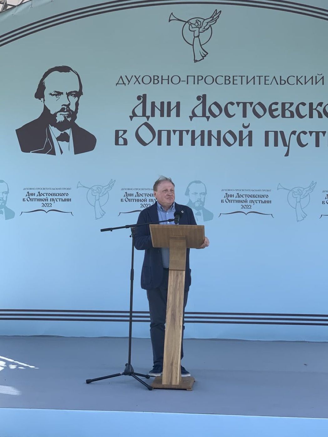 «Для Оптиной пустыни и всей Калужской земли этот день останется памятным событием, исторической вехой», – отметил Анатолий Дмитриевич Артамонов, председатель комитета Совета Федерации по бюджету и финансовым рынкам. Представитель законодательной власти также напомнил гостям слова Альберта Эйнштейна: «Достоевский дал мне много, необычайно много, больше Гаусса». Запомнился вопрос, поставленный Анатолием Дмитриевичем в ходе выступления: «Какая идея должна быть главной для каждого человека?» и ответ на него словами самого писателя: «Сохранение своей души».