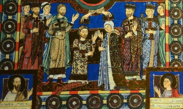 Красавица Евпраксия же была отдана замуж за саксонского маркграфа Генриха Длинного и уже в 16 лет овдовела. К вдове ради ее незаурядного ума, образованности и красоты посватался император Священной Римской империи Генрих IV. Евпраксия дала согласие в 1089 году, и далее европейская история знает ее под двумя именами: Прасдека (вариант имени Евпраксия) и Адельгейда.