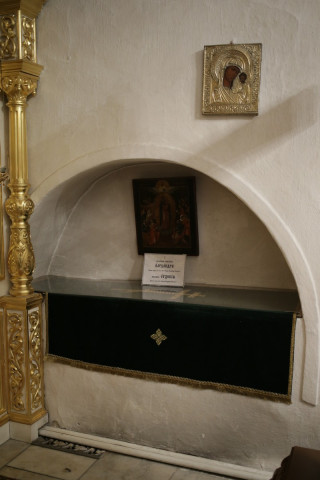 Мы долго стояли с матушкой-настоятельницей возле иконы Божией Матери Боголюбская (которую еще называют «Боголюбивая»), принесенной во Владимир святым благоверным князем Андреем, вторым по старшинству сыном Юрия Долгорукого. Сейчас в иконостасе находится современный образ. Сведения о чудотворном образе, написанном русскими мастерами в XII веке по просьбе князя в память о явлении ему Божией Матери, таковы: в 1992 году по ходатайству владыки Евлогия он был помещен в Успенском соборе Княгинина монастыря, который в то время еще принадлежал музею. Когда же в1993 году монастырь был открыт, верующие получили возможность молиться перед древней иконой. Но в 2009 году, после обнаружения на ней плесени, ее взяли на реставрацию. В настоящий момент чудотворный образ находится в специально оборудованном помещении Владимиро-Суздальского музея. А современный список в иконостасе, сообщила Матушка, мироточит...