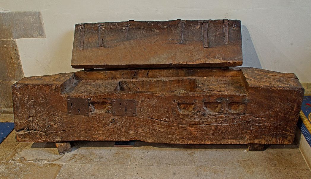 а. Позднесаксонский реликварий, вырезанный из цельного куска дуба. Сейчас он пуст, но некогда в нем хранились святые мощи. При Генрихе VIII все реликвии беспощадно уничтожались реформаторами. До этого в церкви Уимборн-Минстер хранилась даже частица Животворящего Креста, а также частички яслей Христа и кусочки Плащаницы.