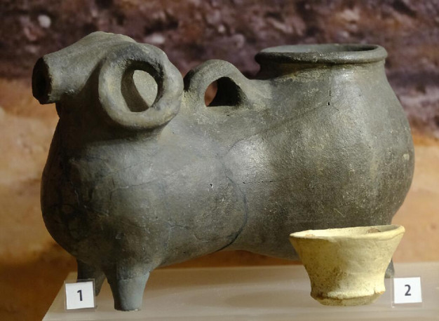 Вслед за рассказчицей я спускаюсь в полутемный зал, где видны деревянные балки и глубокий подпол с древними кувшинами, большими и маленькими.