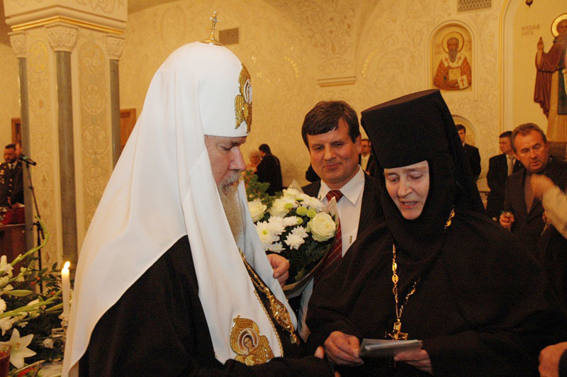 Строители красиво распланировали дворик, а позже окружили все это монастырской стеной. Для начала мы оформили приход. 4 марта 2004 года я приняла монашеский постриг и молилась об утверждении монастыря. И вот следующее чудо – по промыслу Божию храм “Всецарица” был в 2005 году преобразован Священным Синодом Русской Православной Церкви в женский монастырь (запись в Журнале № 55 от 16 июля 2005 г.), и я была назначена его настоятельницей с награждением наперсным крестом; а позже, в 2009 году, была утверждена игуменией обители, что и пророчила мне в детстве мама».