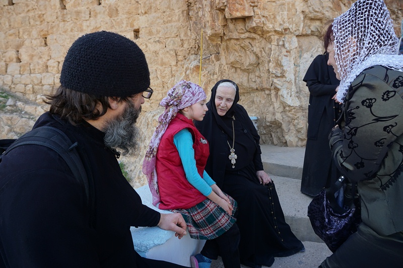Когда мы посещали монастырь преподобного Герасима Иорданского, наша группа разошлась по разным уголкам монастыря, а матушка осталась отдыхать на лавочке в храме. Через некоторое время я захожу в храм и вижу группу русских паломников, окруживших матушку, и они по очереди падают перед ней на колени и исповедуют свои беды, кто-то плачет. Все эти, казалось бы, чужие для матушки люди проявляли любовь, веру, упование на матушку как на старицу, и никто не отходил, не получив помощь.