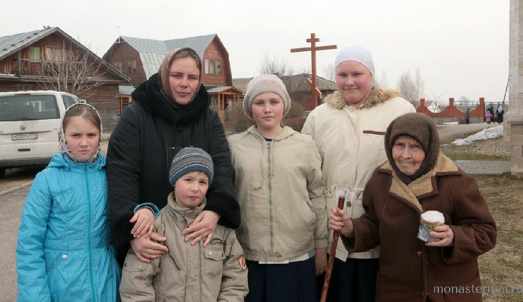 А семья Кормильцевых  – она до этого жила в Казахстане. Благословил их ехать в Шостье архимандрит Наум из Троице-Сергиевой лавры. Поскольку первая из когорты  «монастырских» переселенцев, с кем мне довелось побеседовать, была как раз многодетная мама Елена Кормильцева, то с ее рассказа я и начну. «Мы перебрались из Казахстана в Россию в 1999 году, пожили какое-то время у родственников, затем я с тремя детьми отправилась в Коломну, в женский монастырь, где была моя сестра. Там нас благословили поехать в Троице-Сергиеву лавру к старцу. Эту поездку вспоминаю, как чудо Божие. Выстроилась длиннющая очередь: некоторые даже из-за границы приехали, некоторые по три дня ждали – все хотели услышать духовные советы и напутствия отца Наума. А мы к нему быстро попали, в тот же день! Батюшка долго говорил с нами, рассказывал, какие молитовки читать. С собой дал огромную коробку, полную внушительных по размеру книг духовного содержания. И благословил ехать в Шостье Рязанской области. Еще он благословил меня рожать детей. Конечно, ни о каком таком Шостье мы не слышали. Что удивительно: даже в Касимове останавливаем одного, второго, третьего, спрашиваем о Шостье и Патриаршем подворье храма святителя Николая Мирликийского, а в ответ слышим: " Не знаю, где это". Только один дядечка-таксист, причем не русский, вызвался нас отвезти на место. Едем – лес и лес кругом. Думаем: куда он нас везет? Когда приехали, увидели разрушенную церковь, на карнизах которой росли березки. Колокольни не было. Стоял небольшой турник что ли, на нем висел колокольчик. Молодая сестричка после службы зазвонила в него. Мы подошли, нас встретил отец Владимир Постников, клирик монастыря. Вначале нашу семью поселили у одной женщины. Позже, когда я четвертого ребенка, Ксюшечку родила, нас принял настоятель – отец Петр. Смотрю теперь на его фотографию и думаю: какой же он духовно сильный и мудрый был, наш незабвенный батюшка! По благословению отца Петра дали нам дом. Работу при монастыре предоставили. В Шостье наша семья пополнилась еще тремя ребятишками. И сегодня мы безмерно счастливы, что живем в такой благодати! Ребята в воскресную школу для детей ходят, мы – в воскресную школу для взрослых. Сестры многому нас научили. Ведь приехав сюда, я даже креститься правильно не умела! Только здесь, благодаря отцу Петру и отцу Владимиру, благодаря сестрам монастыря, я узнала и поняла глубокий смысл слов псалмопевца: "Научи меня исполнять волю Твою, потому что Ты Бог мой; Дух Твой благий да ведет меня в землю правды"» (Пс.142:10).