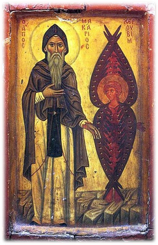 Преподобный Макарий Египетский родился в благочестивой христианской семье в Нижнем Египте около 300 года. В раннем возрасте, по желанию родителей, вступил в брак, но рано овдовел. После смерти жены Макарий углубился в чтение Священного Писания и, похоронив родителей, удалился в ближайшую к селению пустынь, стал там послушником при одном старце-отшельнике. Основным занятием его была молитва, псалмопение и богомыслие. Для снискания пропитания он, как и многие другие подвижники того времени, плел корзины. Проживающий рядом местный епископ по просьбе местных жителей рукоположил Макария в одного из младших клириков местной церкви. Что это был за церковный чин мы так и не знаем. Но мы видим, что Макарий, тяготившийся полученным саном, оставил это селение и удалился в другое место.Там, когда он уже пребывал в полном одиночестве, с ним случилось следующее искушение. Одна девица стала беременной и оклеветала Макария  как виновника ее греха, при этом Макарий безропотно принял на себя вину, несмотря на побои со стороны местных жителей и бесчестие. Но когда настало время родить, эта девица никак не могла вывести на свет свое чадо. И тогда она покаялась в своем грехе.