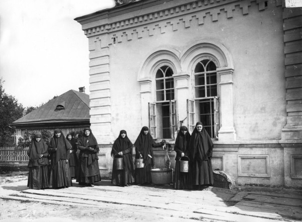 С грустью покинули Саровскую пустынь и отправились в городок, где построены бараки для богомольцев. В часовне епископ Иннокентий отслужил короткий молебен, и мы поехали дальше лесом. Погода была жаркая, и дул сильнейший попутный ветер, гнавший пыль с нами. В 10 с 1/2 приехали в Дивеевский Женский монастырь. В домовой церкви настоятельницы матери Марии отслушали обедню, затем все сели завтракать, а Аликс и Я отправились к Прасковье Ивановне (блаженной). Любопытное было свидание с нею. Затем мы оба поели, а мама с другими посетили ее. Осмотрели церковь Преображения, где сохраняются вещи святого Серафима, его келию, типографию и живописную школу сестер.
