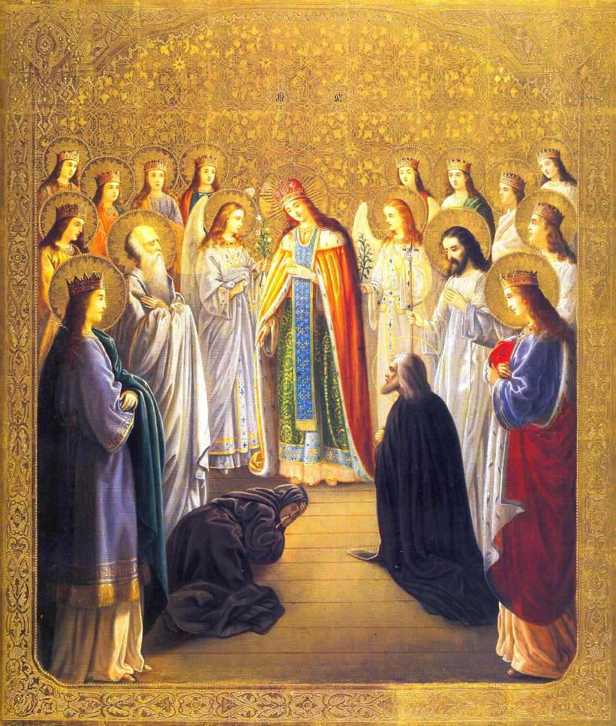 Так вот кто здесь покоится! Блаженная старица Евпраксия, бывшая в келии Преподобного в день Благовещения при явлении ему Самой Царицы Небесной с ангелами и святыми девами!