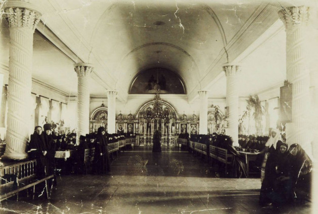 По левой стороне от собора – корпус, где спасалась некогда блаженная Наталия. Небольшое крылечко, несколько ступеней вверх ‒ и мы в келии у блаженной. Все сохраняется в образцовом порядке. Понимаешь, что это не только дорогая память об ушедших, но что эти места, где происходила великая брань избранниц Божиих с духами злобы поднебесной, и ныне укрепляют и освящают незримо каждого, кто с верою призывает имена их насельниц.
