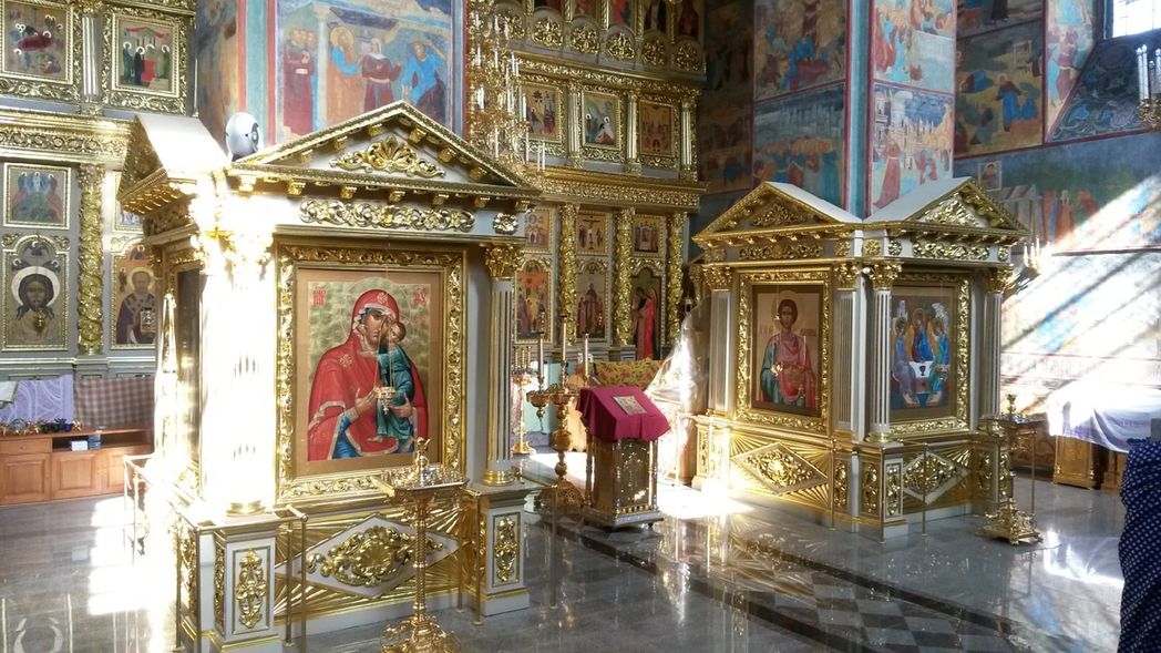 Если мы обратим внимание на архитектурный ансамбль храмов, келейных корпусов, стен и башен, то удивимся, сколько здесь одновременно эпох и направлений – от русского стиля до классицизма и барокко. Храмы обители словно парят над землей. И, созерцая старинную архитектуру, человек прикасается к подлинной и вечной красоте. А Свято-Введенский собор, построенный на месте обретения Чудотворной иконы, знаменит своими фресками XVII столетия и охраняется ЮНЕСКО. Его строительство в 1680 году благословил Патриарх Никон.