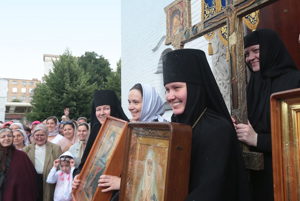 А мне хочется обратить внимание читателя на следующие обстоятельства. 9 апреля 1910 года епископ Трифон (Туркестанов) посвятил первых 17 сестер во главе с Великой княгиней в крестовые сестры и следующим утром за Литургией митрополит Московский Владимир (Богоявленский) возвел Елисавету Феодоровну в сан настоятельницы. В тот день Великая княгиня сказала слова, которые вряд ли кого-то из наших современников, не утративших способность сопереживать, откликаться на чью-то беду, оставят равнодушными: «Я оставляю блестящий мир, но вместе со всеми вами я восхожу в более великий мир – в мир бедных и страдающих». К 1918 году в Марфо-Мариинской обители милосердия насчитывалось уже 105 насельниц, и фронт работ у них был огромный! В настоящее время в обители на Большой Ордынке подвизаются около сорока монашествующих и несколько сестер милосердия. (Сестер милосердия сейчас немного по той причине, что остальные сестры приняли монашеский постриг). Есть еще сестричество – это сестры которые не живут в монастыре, но регулярно помогают. Монахини в большей степени заняты богослужением, хозяйственными, административными делами. Сестры милосердия служат в социальных проектах. И огромная нагрузка по претворению этих проектов в жизнь ложится на плечи сотрудников обители и большого числа добровольцев, которые, по словам игумении Елисаветы, по сути являются теми сестрами милосердия, что служили здесь при Елисавете Феодоровне. «Они также приходят сюда, желая послужить Христу», – тепло говорит о них матушка-настоятельница.