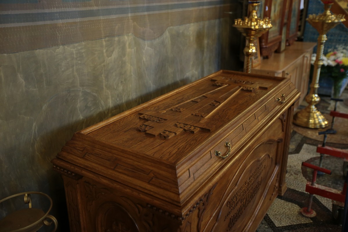 … По благословению настоятеля монастыря игумена Николая (Парамонова) знакомил нас с обителью и ее историей иеромонах Филарет (Коноплев). В храме преподобного Сергия отец Филарет подошел сначала к большой иконе святителя Игнатия (Брянчанинова), затем сделал несколько шагов дальше вдоль стены – к деревянной раке. Сказал, что здесь покоятся честные останки архимандрита Игнатия (Малышева). На многие годы его захоронение было утеряно, а в 1998 году братия возрождающейся обители нашла его во время раскопок. По благословению священноначалия останки Игнатия Маленького были поставлены здесь – в величественном соборе, являющем собой первую в России базилику. Как написано в предисловии к вышеназванной книге, содержащей жизнеописание архимандрита Игнатия: «Верный раб Божий, смирением своим, конечно же, стяжавший право именоваться сыном, вернулся в храм, чтобы даже после земной кончины нести особое послушание – быть молчаливым наставником, ко гробу которого возлюбили приходить иноки и теперь уже многочисленные богомольцы, испрашивая помощи и благословения в нуждах своих».