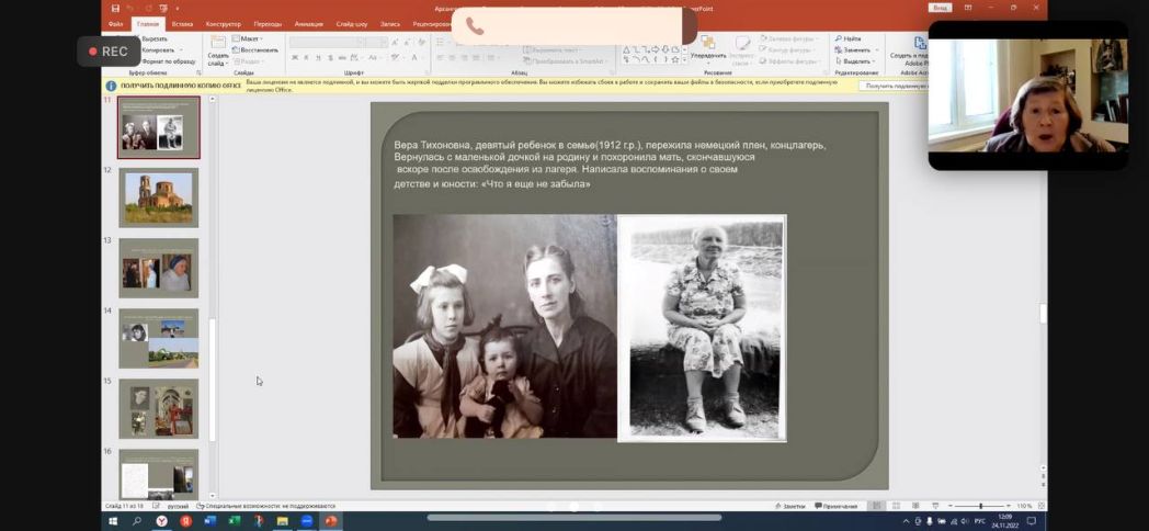 Доклад «Семейный подвиг супругов-новомучеников Тихона и Хионии Архангельских в судьбе Троекуровского монастыря в эпоху гонений» Е.И. Каликинской, кандидата биологических наук, руководителя музейно-просветительского комплекса Феодоровского женского монастыря г. Переславля-Залесского раскрыл историю семьи, жизнь которой была тесно связана с Троекуровским Свято-Димитриевским Иларионовским женским монастырем Липецкой митрополии. В судьбе супругов-новомучеников Тихона и Хионии Архангельских, как в капле воды – мир, отразилась история всей России ХХ века – отметила Екатерина Игоревна в начале своего выступления.