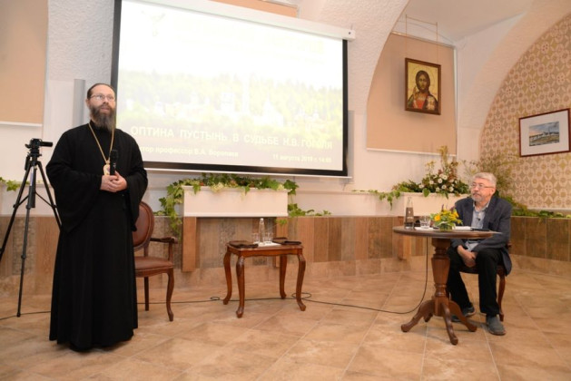 11 августа состоялась вторая лекция, главным героем которой стал Николай Васильевич Гоголь. Рассказать о роли Оптиной пустыни в судьбе автора «Мертвых душ» был приглашен доктор филологических наук, профессор кафедры истории русской литературы Московского государственного университета имени М.В. Ломоносова В.А. Воропаев. Выбор организаторов лектория был во всех отношениях точен: Владимир Алексеевич практически всю свою жизнь посвятил изучению творчества Гоголя и, вместе с тем, очень многое связывает его с обителью. В Оптину он приезжает на протяжении тридцати пяти лет – со времени, когда монастырь еще не был возвращен Церкви. Не раз привозил с собой студентов – некоторым это помогло избрать впоследствии церковный, в том числе и монашеский путь.